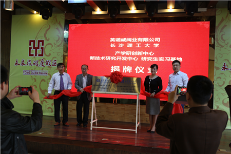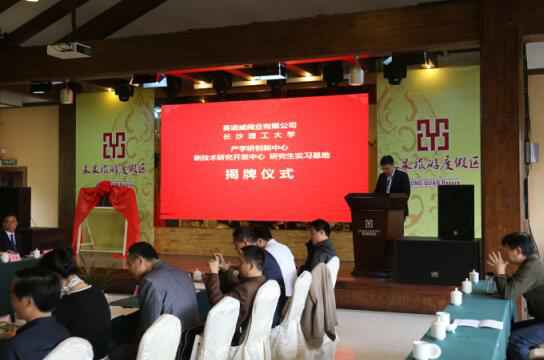 2018年4月11日上午,在铜陵永泉农庄举行,乐鱼在线登录入口-乐鱼leyu(中国)与长沙理工大学“产学研创新中心”、“新技术研究开发中心”、“研究生实习基地”揭牌仪式。